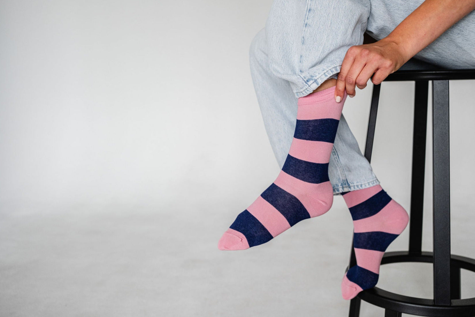 Bringen Sie Farbe in Ihren Alltag mit unseren Streifen Socken in Rosa und Rot. Diese lebendigen Socken verbinden Komfort mit einem trendigen Look und sorgen für gute Laune bei jedem Schritt. Perfekt, um jedem Outfit einen frischen, modischen Akzent zu verleihen. Genießen Sie weiche Materialien und eine perfekte Passform, die den ganzen Tag angenehm bleibt. Setzen Sie ein Statement – stilvoll und bequem zugleich.